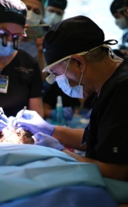 Participants were divided into teams to maximize the learning experience, allowing them to observe and interact with the different procedures in all theaters. Each operating theater had two moderators overseeing the sessions alternately, ensuring a thorough and interactive learning experience. In the Main Amphitheater, main moderators Dr. Bessam Farjo and Dr. Paul T. Rose facilitated discussions and addressed numerous questions from the audience, ensuring that no query or concern remained unresolved. This led to a comprehensive exchange of knowledge and expertise among participants.